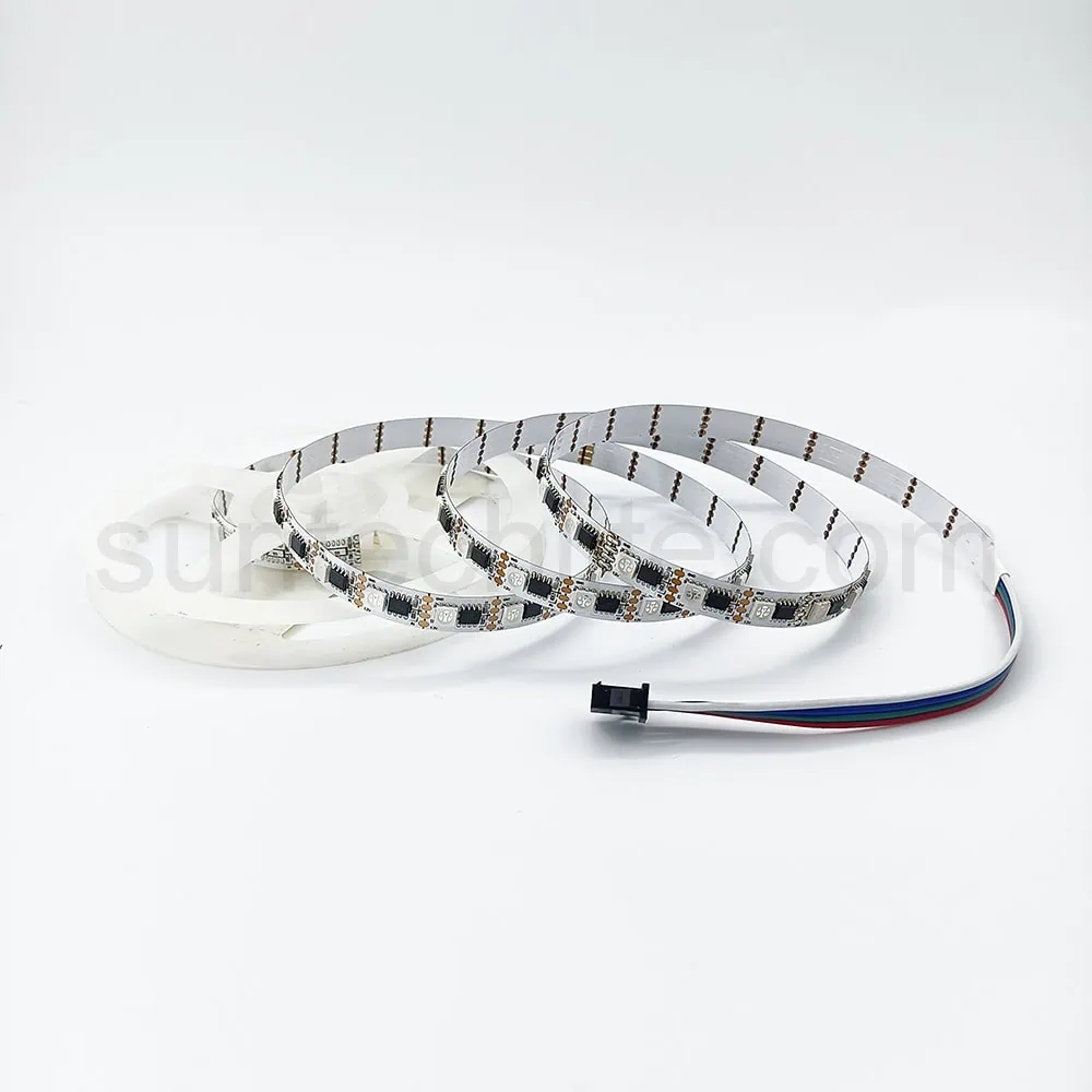 There are 60 addressable RGB LEDs per meter. This led strip is DC24V input and 6 LEDs cuttable. This 60 LEDs/m led strip is a common type that can be applied to a plenty of occasions in normal life. For beginners who come into the world of addressable led strip for only a short time, this led strip could be a good choice to start with.