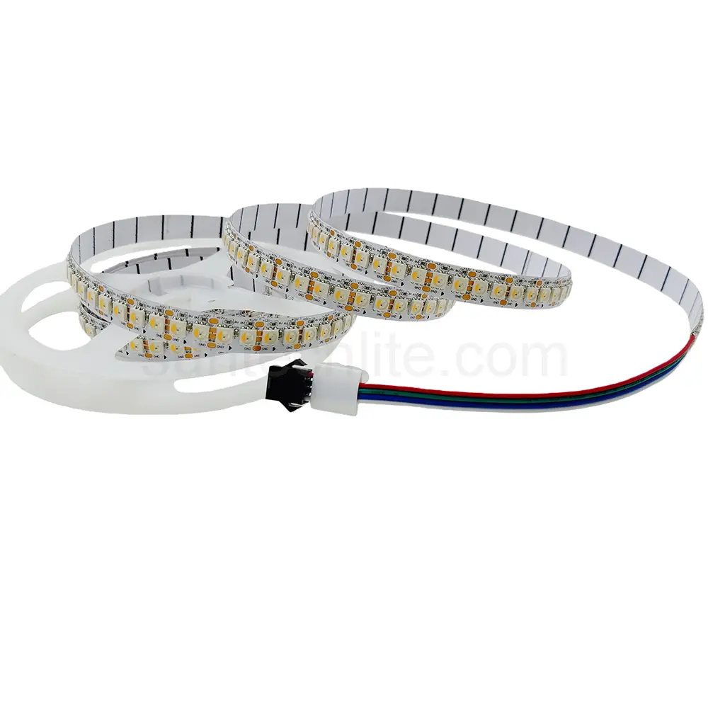 This is an RGBW addressable LED strip controlled by UCS2904 IC. There are 60 Addressable RGBW LEDs per meter, and 10mm wide for the 60LEDs/meter, DC 24V input, and every 3 LED can be cut. The minimum cutting unit is 50mm, and you can cut it into different lengths according to the project and requirements. With a 3M double-sided tape, you can stick the addressable led strip to any flat or uneven surface.