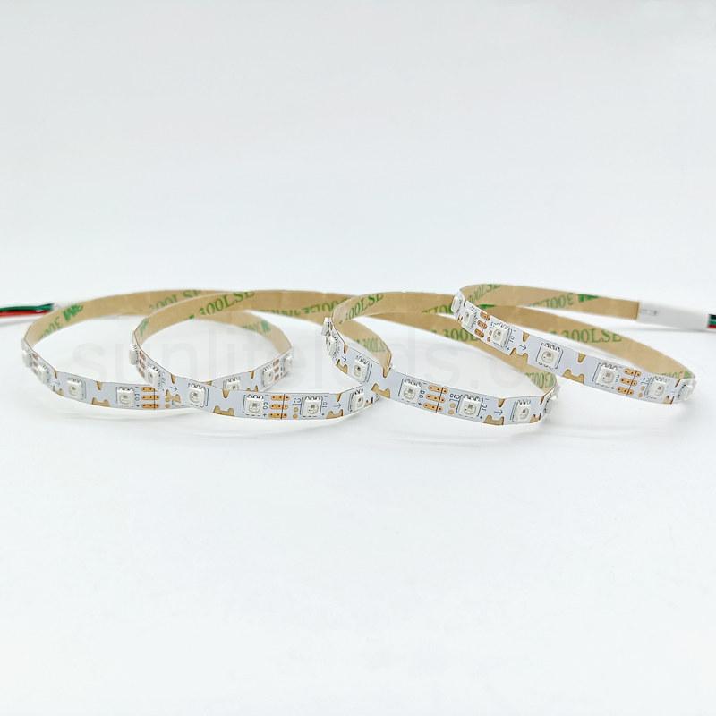 The programmable SK6812 RGBW LED strip has a density of 60 LEDs per meter. For users requiring higher light density, a high-density version with 120 LEDs/144 LEDs per meter is also available.The mini SMD3535 LED strip is thin and flexible. The RGBW LED pixel strip is only 5mm wide. Easily adapt to complex installations.